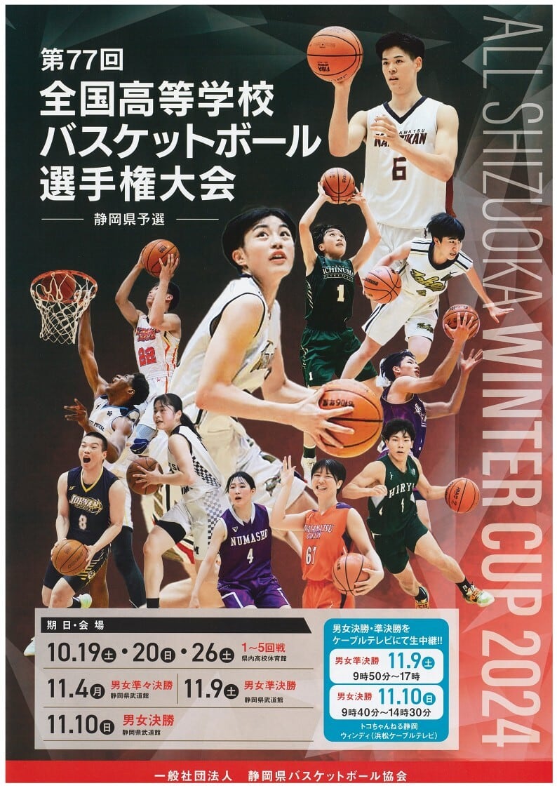 第77回全国高等学校バスケットボール選手権(ウィンターカップ2024)静岡県予選の大会プログラムです。